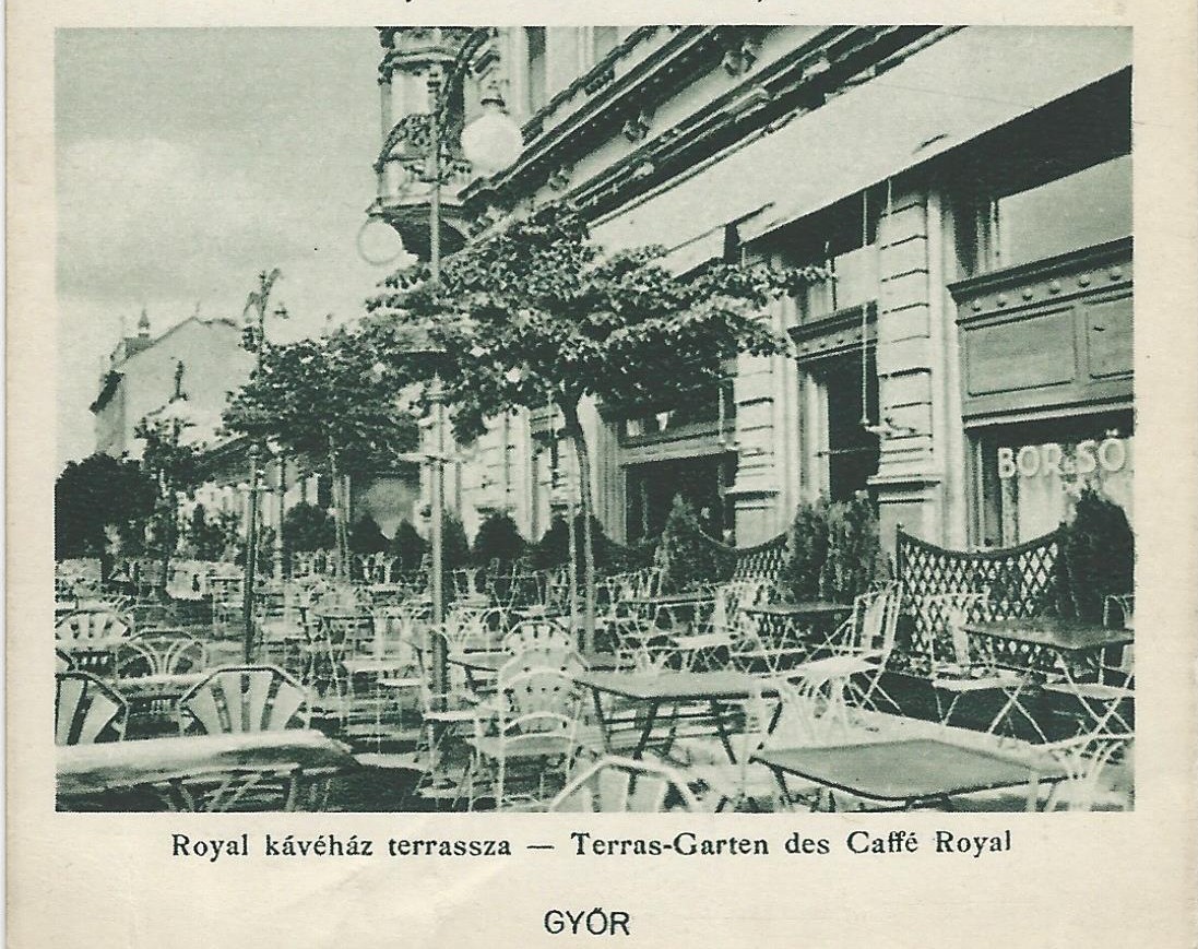 — Royal emeIeti terasza megnyílt. Hangulatos esti szórakozóhely.” (Győri Hírlap, 1935. 08. 18.)