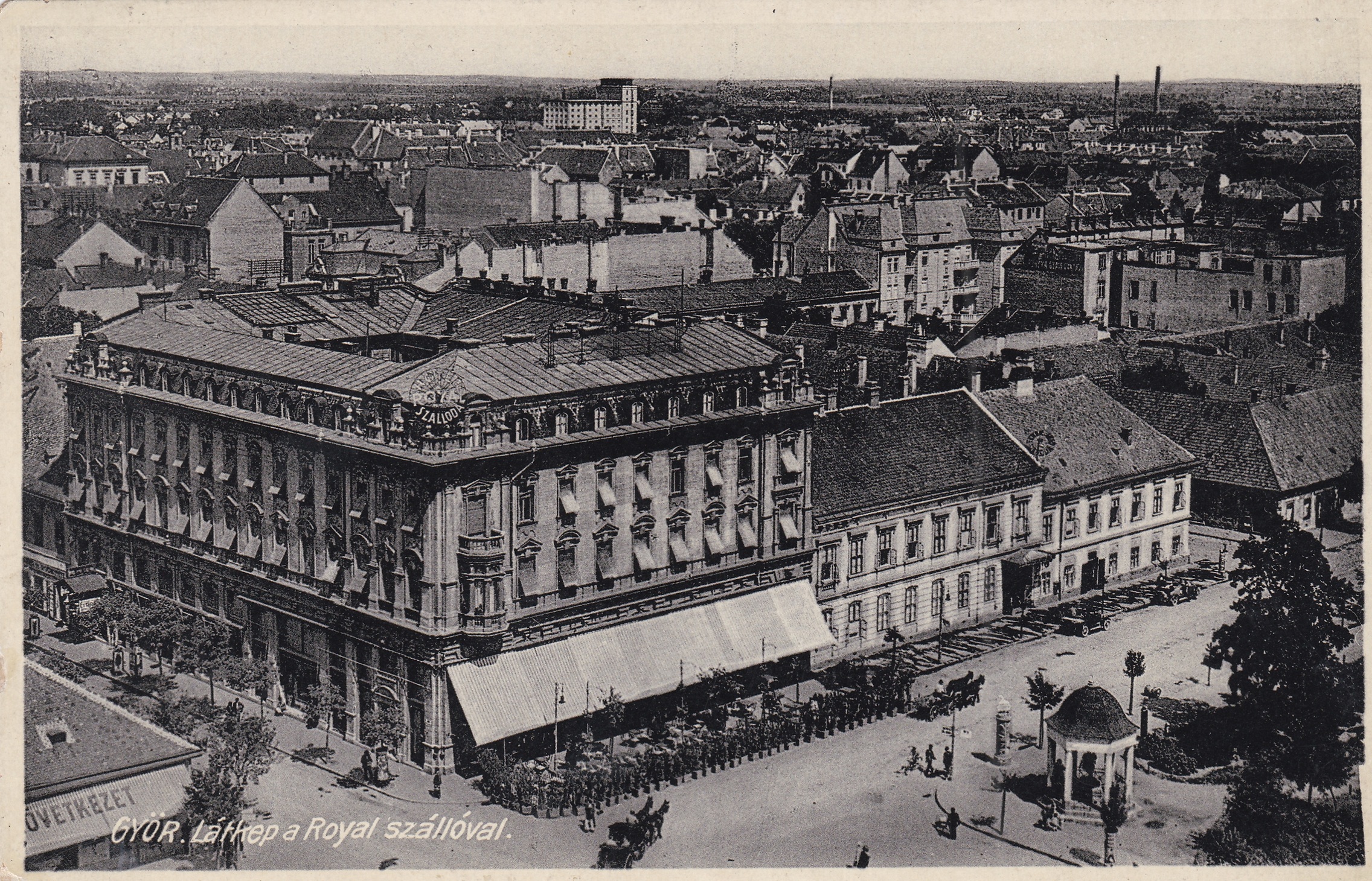 „— Terraszt építenek a Royal-szállodához. A Royal-szálloda épületét kibőivitik, a Vilmos császár-úti fronton emielieiti terraszt építenek. A munkálatokat már megkezdték és augusztus közepén fejezik be.” (Győri Hírlap, 1935. 07. 12.)