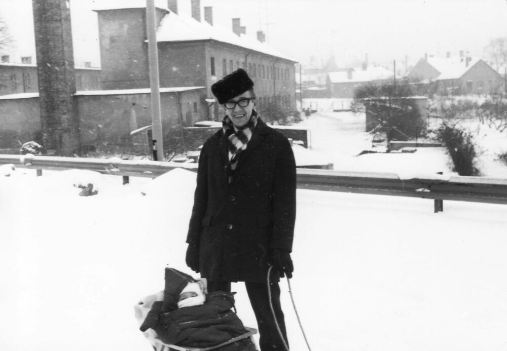 Bordás-Németh Réka családi fotóalbumában lapult ez a fotó, mely 1970-ben készült a Szent István (akkori nevén Tanácsköztársaság) úton a Béke híd belvárosi hídfőjénél. Háttérben a Domb utca házai látszanak. A szánkóban keresztlánya, Réka, a kép küldője látható.