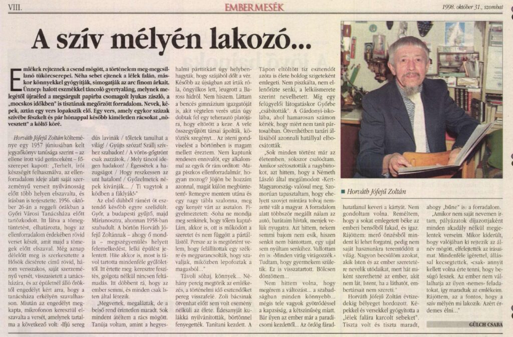 Gülch Csaba a Kisalföld napilap újságírója 1998-ban kétszer is megszólaltatta Horváth Jófejű Zoltánt: