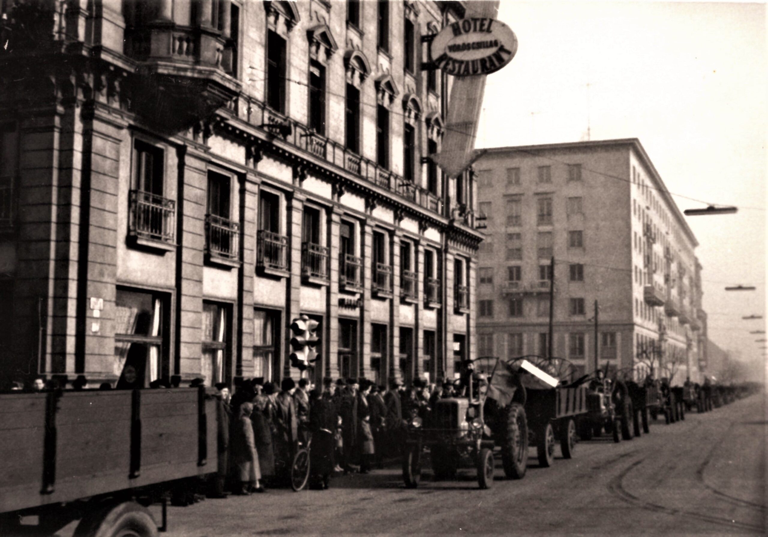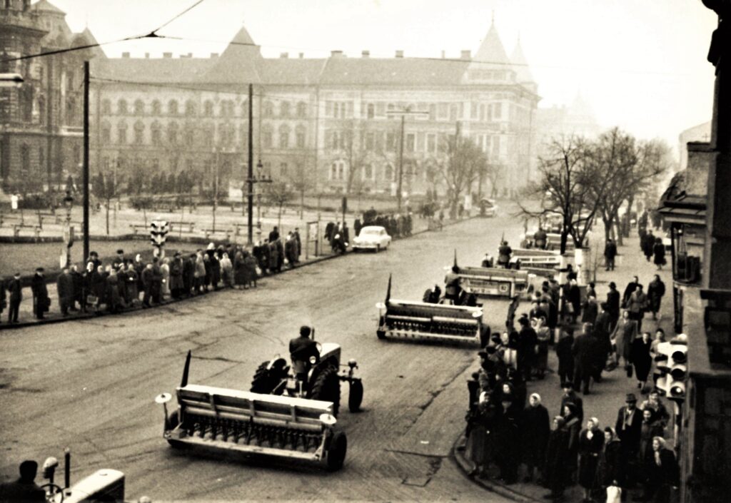 1959. február 25-én mezőgazdasági gépkaraván vonult végig a Szent István (akkori nevén Sztálin) úton.